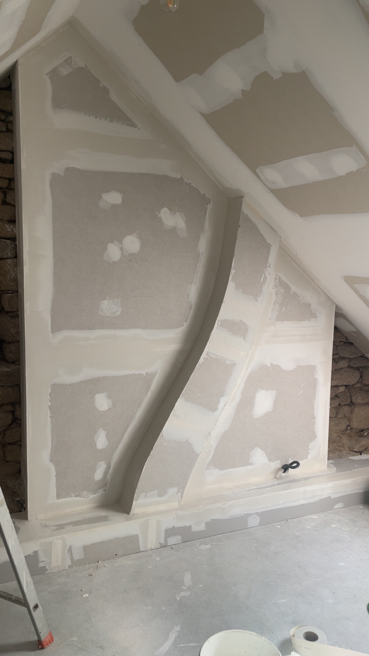 afin d’obtenir des murs et plafonds parfaitement lisses et prêts à peindre ou décorer. Nous intervenons également dans la création sur mesure : moulures, plâtrerie décorative, meubles intégrés et autres éléments personnalisés, réalisés selon vos envies et les spécificités de votre projet. Chaque intervention est réalisée avec précision, en utilisant des matériaux de qualité et des techniques professionnelles, pour garantir un résultat durable et esthétique. Que ce soit pour la rénovation ou la construction neuve, Alenda Placo vous offre un accompagnement complet et des finitions haut de gamme, adaptées à vos besoins et à votre intérieur.